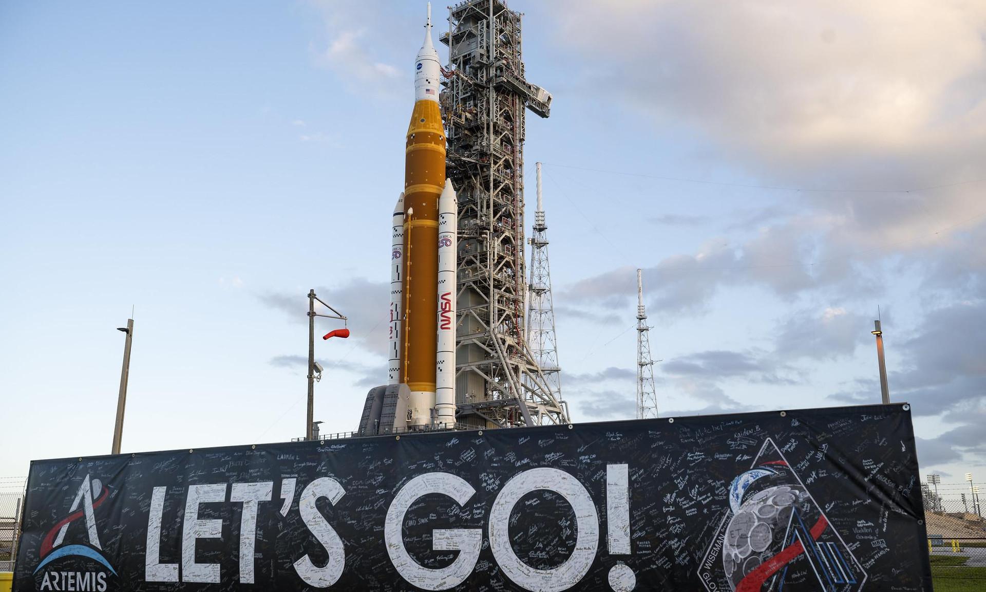 Изначально предполагалось, что SLS будет запущена уже в феврале. Однако сперва проблемы с утечкой водорода, возникшие во время первой тестовой заправки ракеты-носителя топливом, вынудили руководство NASA отложить старт до марта, а затем, уже после признанной успешной повторной репетиции заправки, на второй ступени ракеты-носителя обнаружилась проблема в системе наддува баков с топливом и окислителем.