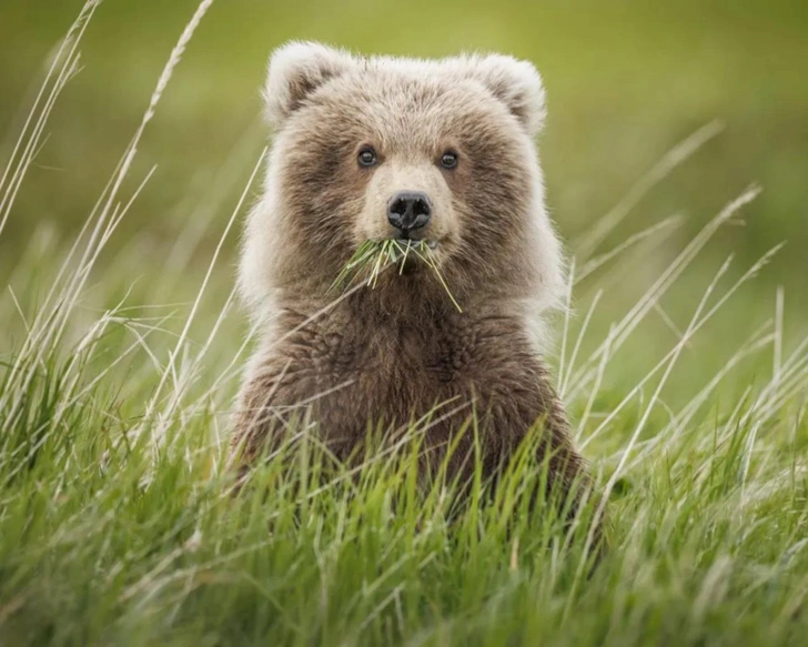 Немалую часть работ финалистов составили снимки диких животных, сделанные в разных уголках мира — именно среди них редакция Vokrugsveta.ru и выбрала полтора десятка работ для сегодняшней галереи. Одним из лучших нам показался портрет медвежонка, который решил перекусить травой. Этот снимок в итоге стал финалистом TPOTY 2025 в номинации One Shot — Green Planet.
