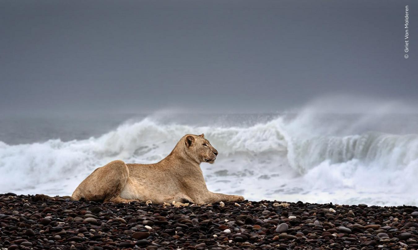 Среди всех работ финалистов редакция Vokrugsveta.ru выбрала 25 лучших. Заглавным в этой галерее стал снимок львицы, охраняющей тушу морского котика на побережье в Намибии — из-за сокращения популяции зебр и другой сухопутной добычи местные львы в последние годы начали успешно охотиться на тюленей. Это необычное фото вышло в финал в номинации «Животные в естественной среде».