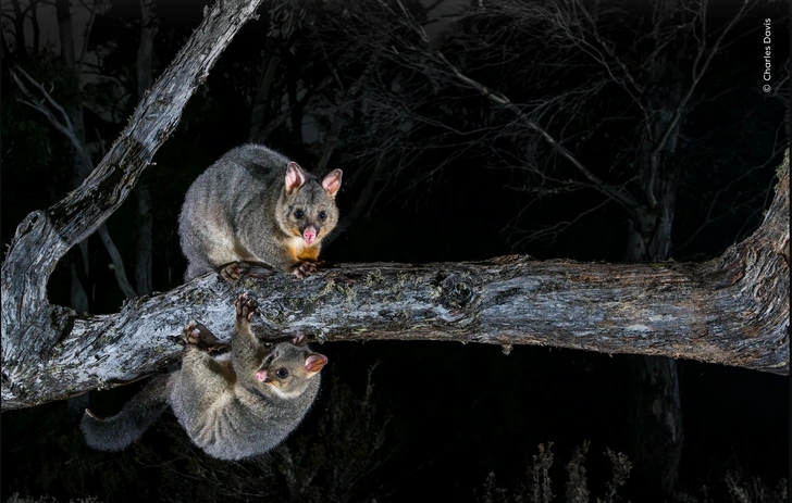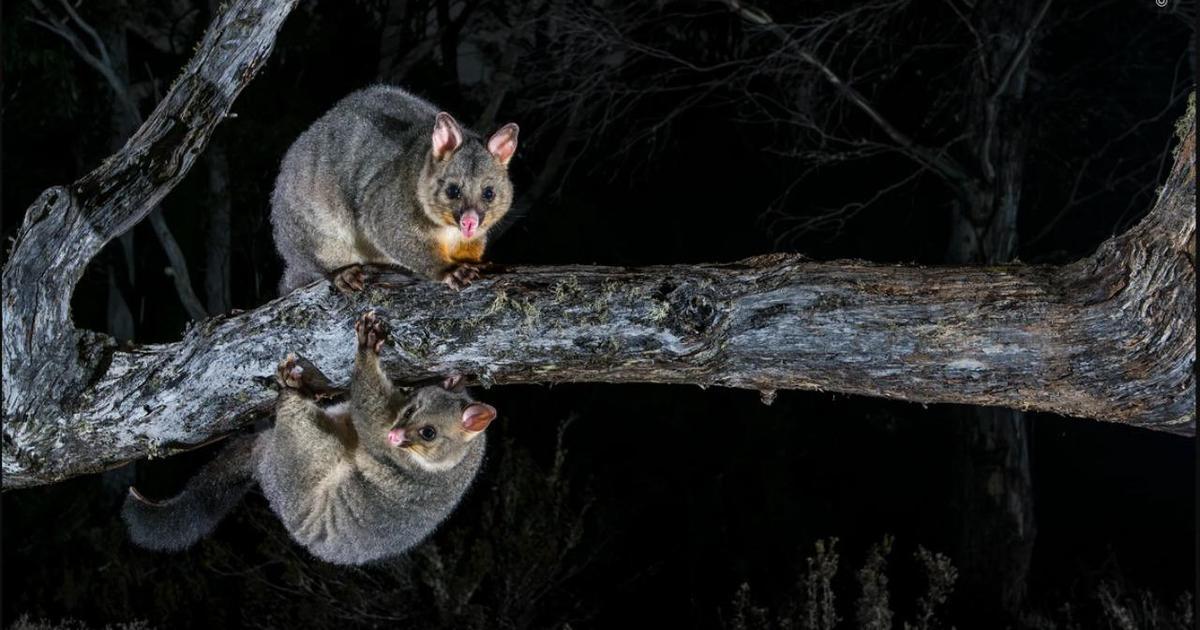 Редакция Vokrugsveta.ru предлагает вам полюбоваться на все снимки, которые будут участвовать в голосовании на сайте конкурса. Нашим фаворитом среди них стало сделанное в ночном лесу Тасмании фото самки щеткохвостого поссума, или кузу, и ее подросшего детеныша.