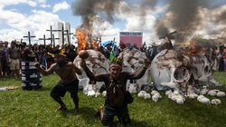 Вы так же истребляете нас: коренные бразильцы сожгли огромные черепа на акции протеста
