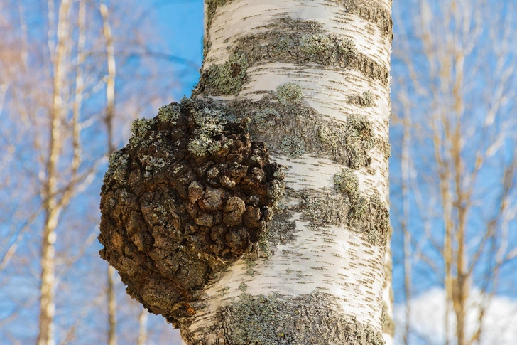 Черные угольные наросты на стволах северных берез — та самая чага. Это стерильная форма трутовика косого, который паразитирует на березе. В России и странах Северной Евразии чагу заваривают как густой настой и пьют при проблемах желудочно-кишечного тракта (ЖКТ), для «очищения» организма и укрепления сил. В ХХ веке чага получила широкую известность благодаря упоминаниям в контексте лечения онкологических заболеваний.