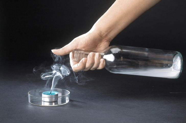 Задувая свечу, мы охлаждаем ее фитиль, останавливая горение; заливая водой — еще и предотвращаем доступ кислорода. А многие огнетушители блокируют приток воздуха к горящему участку струей углекислого газа. Наблюдать, как газ справляется с пламенем, можно и дома. Для этого даже не придется устраивать пожар! На кухне наверняка найдутся и свечка, и все нужное для того, чтобы погасить ее «невидимой рукой».