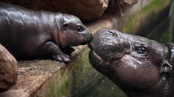 В зоопарке Дуйсбурга появился на свет детеныш карликового бегемота