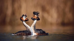 Эти водоплавающие пернатые славятся красивым брачным ритуалом
