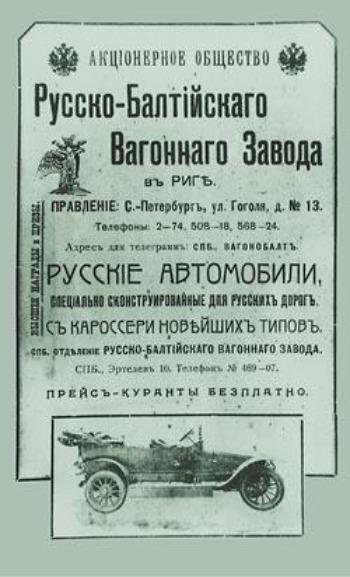 Изначально Русско-Балтийский завод специализировался на выпуске пассажирских, товарных, трамвайных вагонов, сноповязалок и молотилок, двигателей для сельскохозяйственных машин и даже самолетов. С 1893 года в связи со строительством Транссибирской магистрали заказы на вагоны резко увеличились, однако уже в 1907 году резкий спад производства заставил владельца завода Михаила Владимировича Шидловского предложить совету правления этого акционерного общества организовать производство автомобилей.
