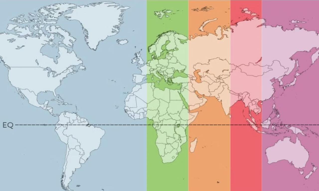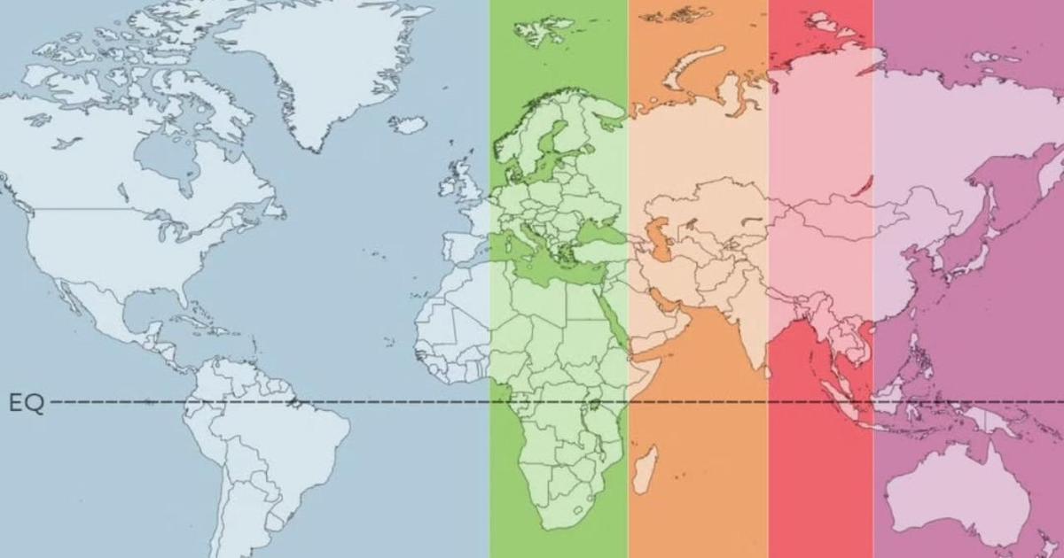 Представленная выше карта мира была подготовлена проектом Nazar Data. Авторы карты сознательно разделили ее на пять неравных по площади вертикальных частей. Однако по другому признаку эти разноцветные полосы примерно равны между собой. Вы ведь уже догадались, о каком признаке идет речь?