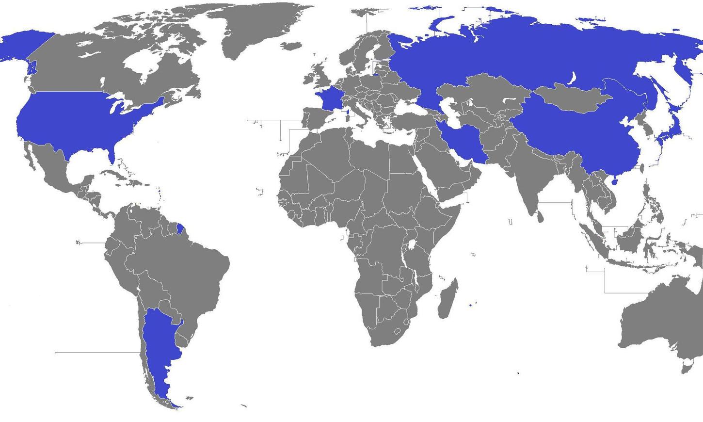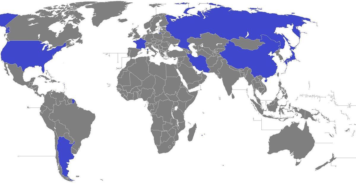 На представленной выше карте мира синим выделены несколько стран мира, которые в разное время записали на свой счет определенное достижение в области космонавтики. Попробуйте догадаться, о каком именно достижении (вполне весомом, между прочим) идет речь. Подсказкой должен стать довольно необычный состав этого «клуба» покорителей космоса.