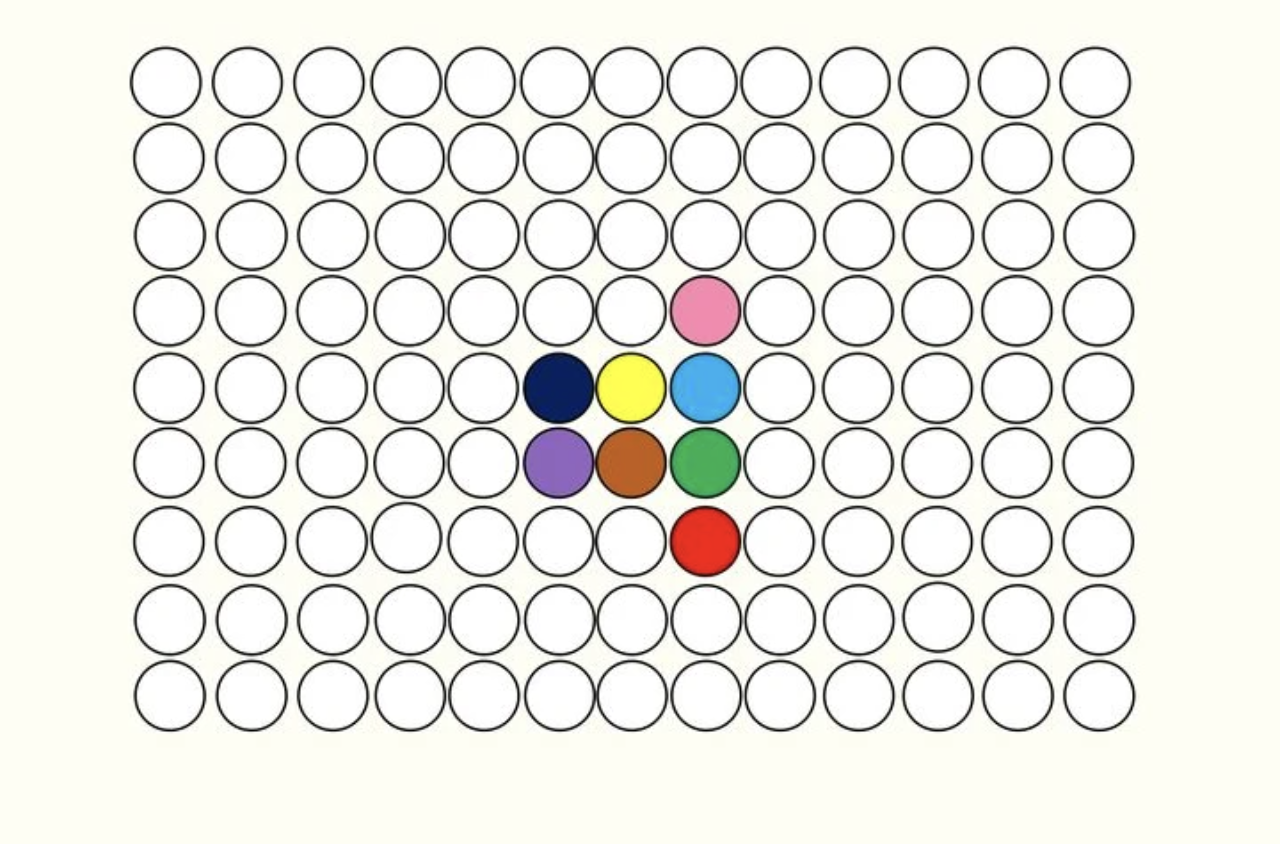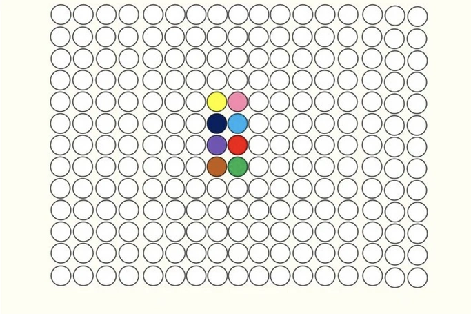 На экране появятся несколько цветовых кругов, и ваша цель — назвать тот, что находится в центре композиции. Звучит легко, но расположение, размер и контраст отвлекают и сбивают ориентацию.