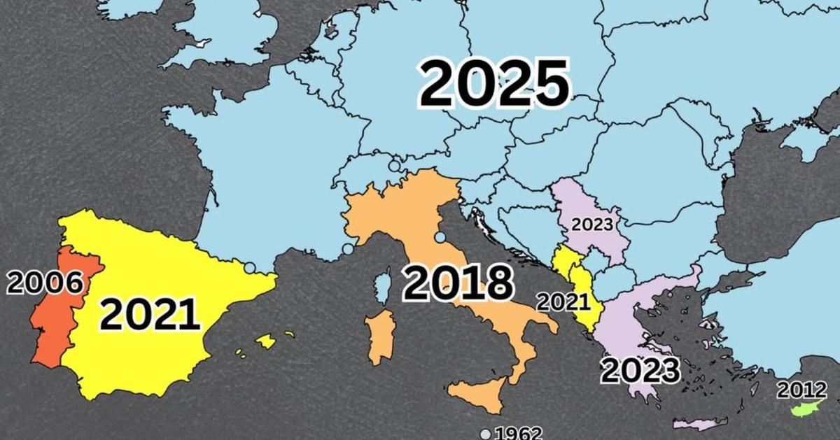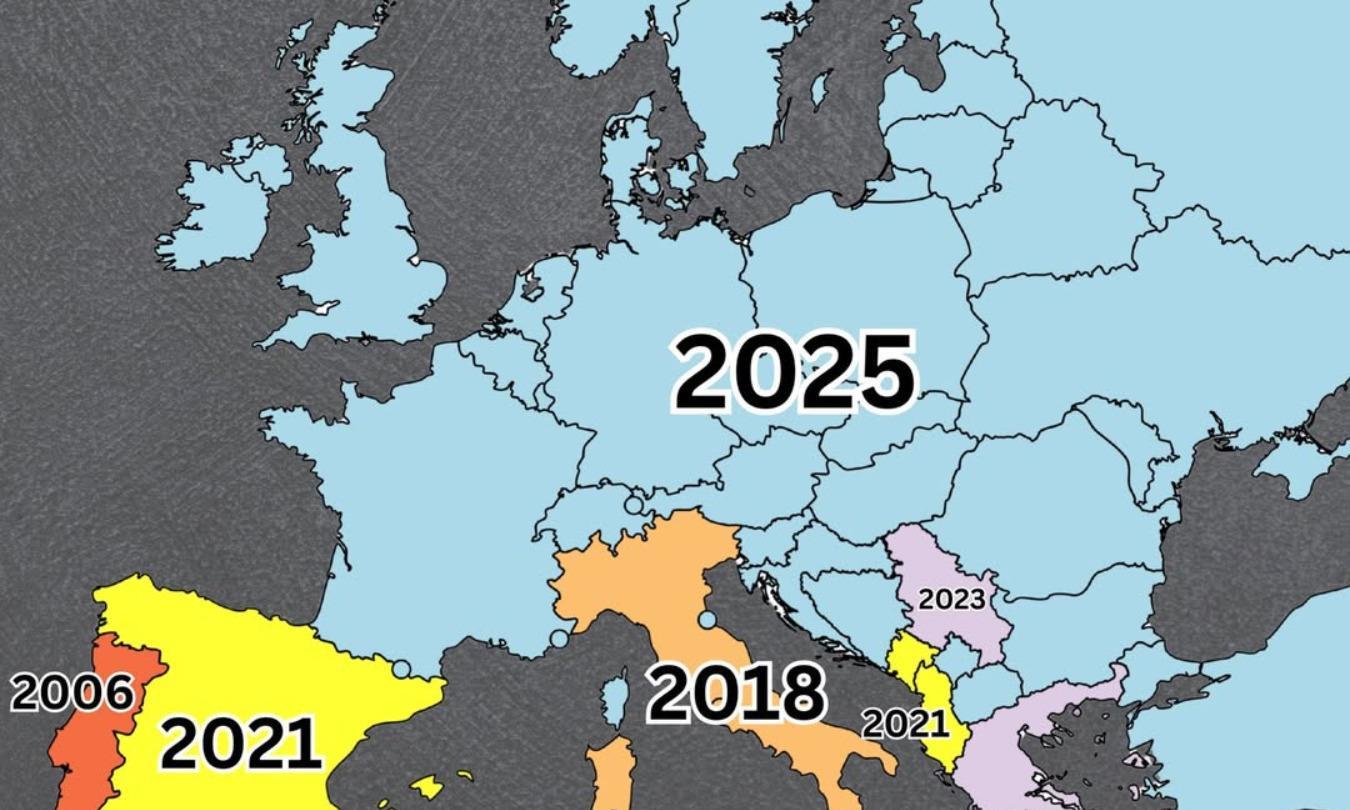 Взгляните на представленную выше карту Европы, подготовленную проектом The World in Maps. На ней указано, в каком году в столице (это важно) каждой из европейских стран в последний раз по состоянию на начало декабря 2025 года происходило некое событие. Нетрудно заметить, что в большинстве государств это событие имело место в 2025 году, но кое-где его не наблюдали уже несколько лет, а то и больше.