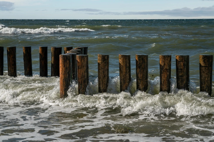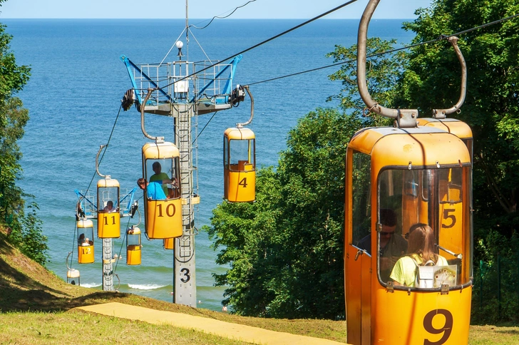 Обязательно прокатитесь на канатной дороге — она работает с апреля по октябрь и соединяет верхнюю часть города с набережной. Город стоит на холмах, поэтому спускаться к морю можно по длинной лестнице, на панорамном лифте или как раз на фуникулере. На набережной установлены фотогеничные деревянные буны — столбики, о которые разбиваются волны.