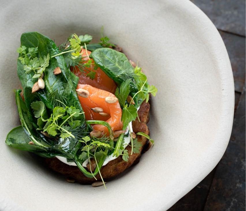 — Для меня один из продуктов, народных продуктов с которым я люблю работать, готовить его, — это капуста, — рассказывает шеф-повар ресторана северной кухни ROOMI Андрей Аникиев. — Я помню, как в детстве мы заготавливали большое количество квашеной капусты и затем хранили на балконе. У себя в ресторане мы сами заготавливаем как кислую капусту, так и работаем со свежей. Я поделюсь рецептом драников из капусты с толокном, который подаю с копченой сметаной слабосоленой рыбой и зеленью.