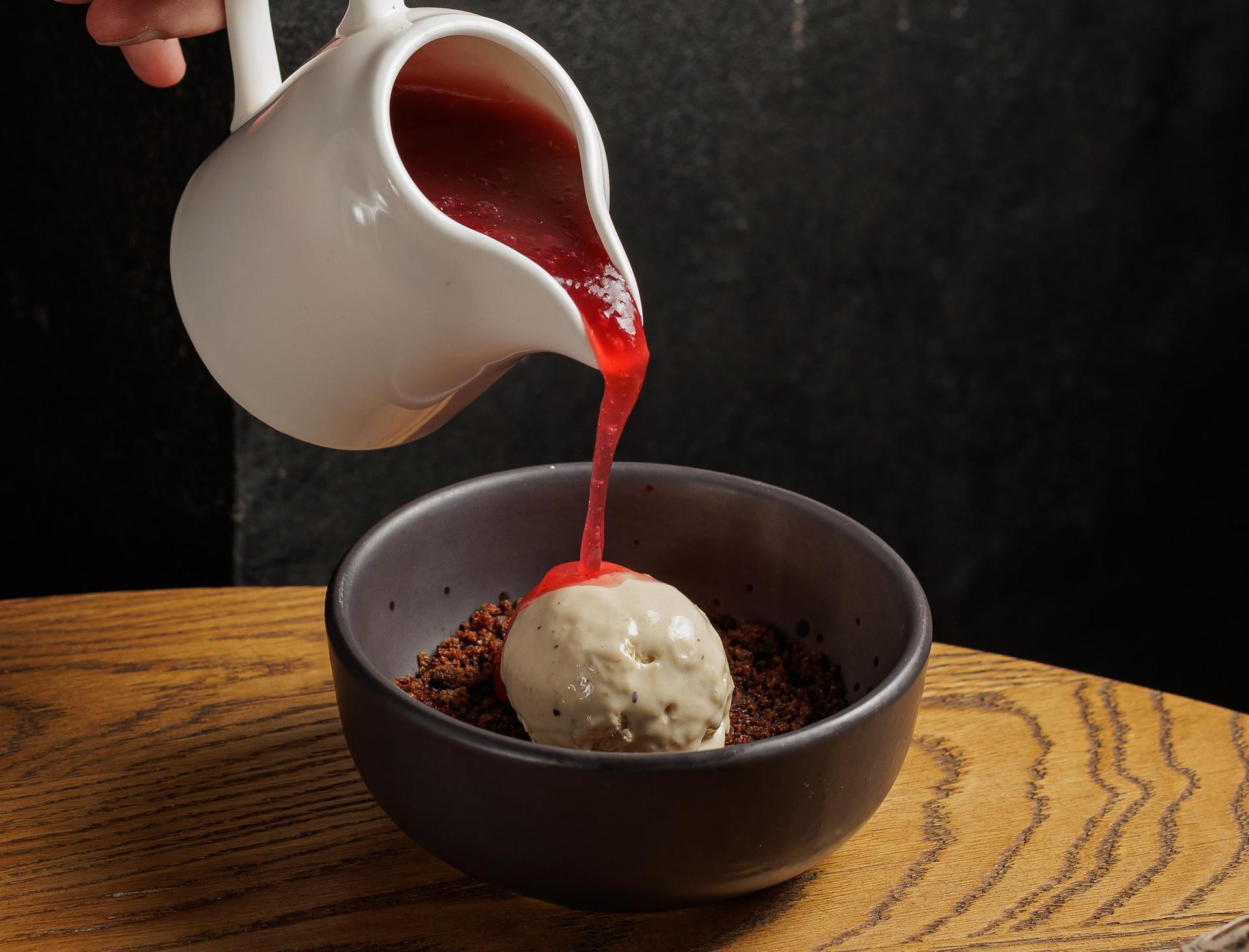 Этот нежный ягодный десерт из черной смородины с мятой и пряностями готовит шеф-повар ресторана «Почтовая Контора 1786 г.» Дмитрий Амелин. Яркая кислинка смородины дополняется свежей ноткой мяты и теплым ароматом корицы и бадьяна, а баланс вкуса достигается благодаря меду и сахару.