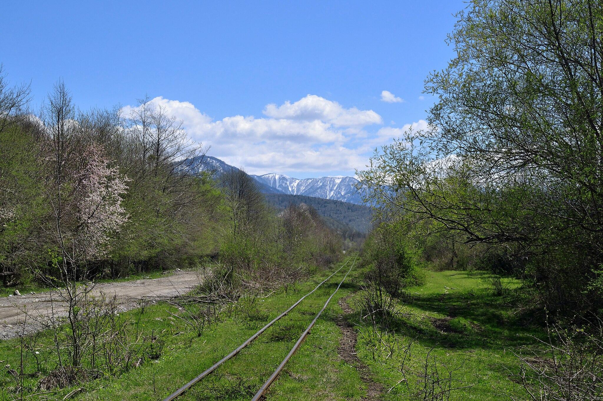 Уходят вдаль последние дома, и вскоре мы выезжаем к обрывистому берегу реки Пшехи. Для железной дороги она как неразлучный, но коварный спутник: другого пути к горным селам, кроме как по долине реки, не найти, но бурные воды то и дело подмывают склоны с насыпью. Тогда в ход идут платформа с гравием и мужики с ломами и лопатами.
