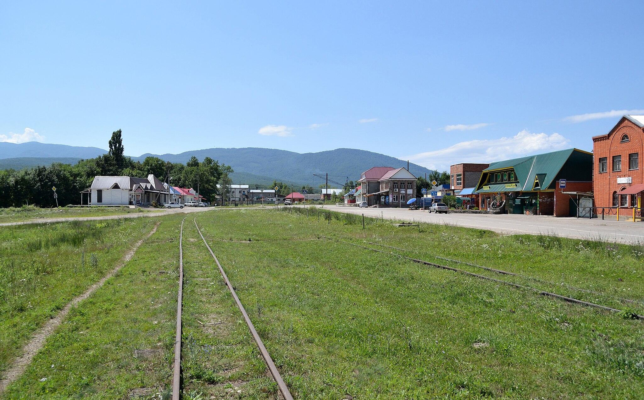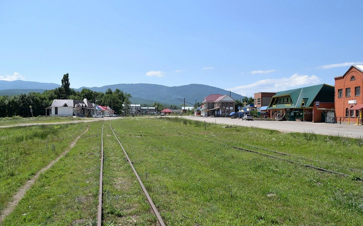 Если обернуться, за крутой стеной леса величественно нависает скала Спящий Черкес, в которой и правда угадывается силуэт лежащего человека в папахе. Вправо уходит вверх долина Пшехи — где-то там, вдалеке, спрятаны главные вершины Кавказского хребта с водопадами и неприступными скалами. Ну а прямо перед нами — еще один склон, за которым скрывается спуск к Черному морю. До него по прямой каких-то 30–40 километров — почти столько мы и проехали до Шпалореза на «матрице». На последнем отрезке пути она объезжает поселок по окружной насыпи, дает гудок и сворачивает на улицу, ведущую к центру поселка.
