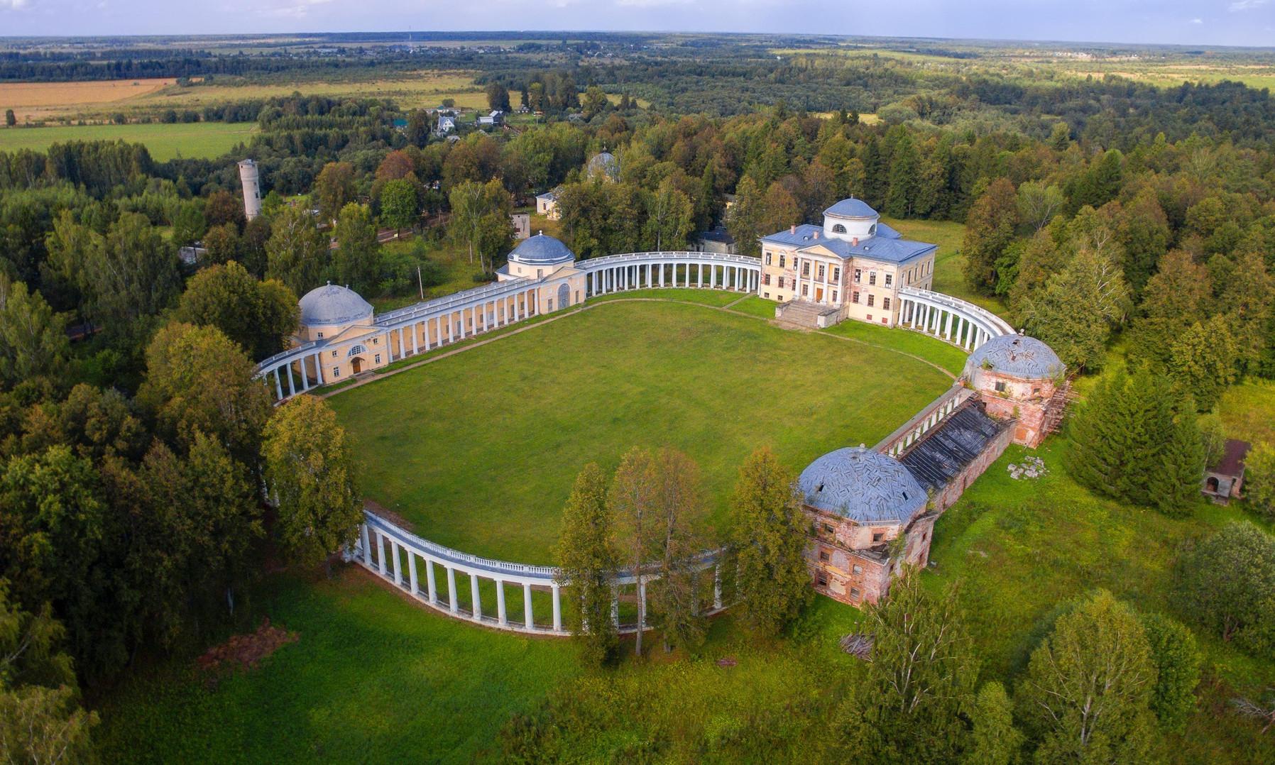 Исследователи называют усадьбу шедевром русского классицизма, созданного знаменитым зодчим, «русским Палладио» Николаем Львовым. До наших дней из его ансамбля сохранился главный дом, соединенный с флигелями и парадными воротами круговой колоннадой, обширный парк с прудами, Знаменская церковь, валунный грот и павильон-колодец в неоклассическом стиле.