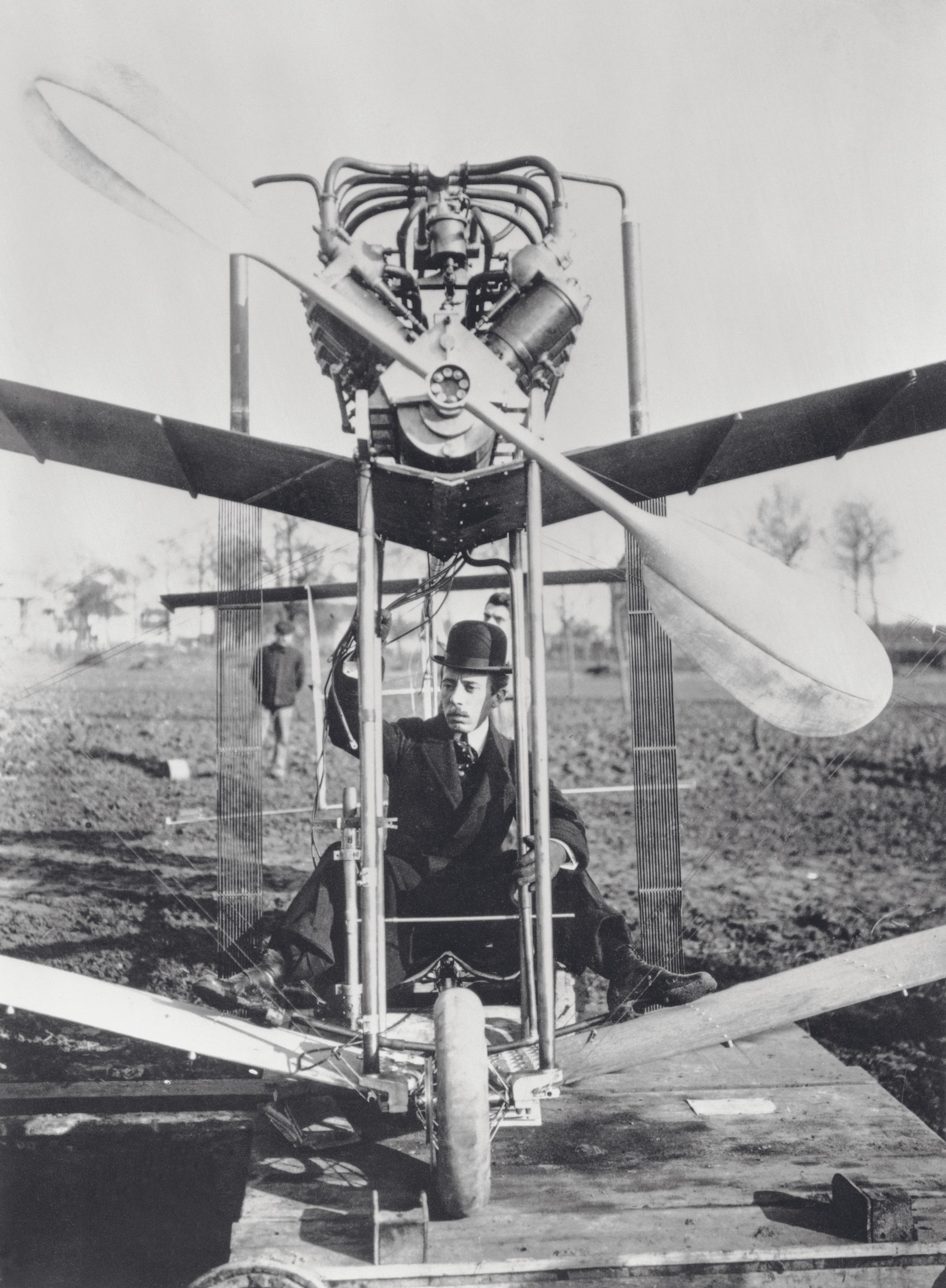 В 1906 году парижане и гости столицы впервые увидели, как летает самолет. Авиатором был Альберто Сантос-Дюмон, сын бразильского плантатора, элегантный джентльмен ростом 152 см. Многие считали его первым летчиком в мире. В действительности братья Райт опередили его на целых три года — он слишком долго экспериментировал с дирижаблями, прежде чем перешел к аппаратам тяжелее воздуха.