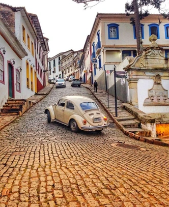 К церквям ведут улочки под уклоном, кажется, не меньше 30 градусов. Центр города застроен домиками XVIII века в идеальном состоянии. По мостовым взбираются мотоциклы и разноцветные «фольксвагены-жуки» — чрезвычайно популярная в Бразилии модель автомобиля. Повсюду слышно пение птиц, иногда заглушаемое колокольным звоном и ревом двигателей.