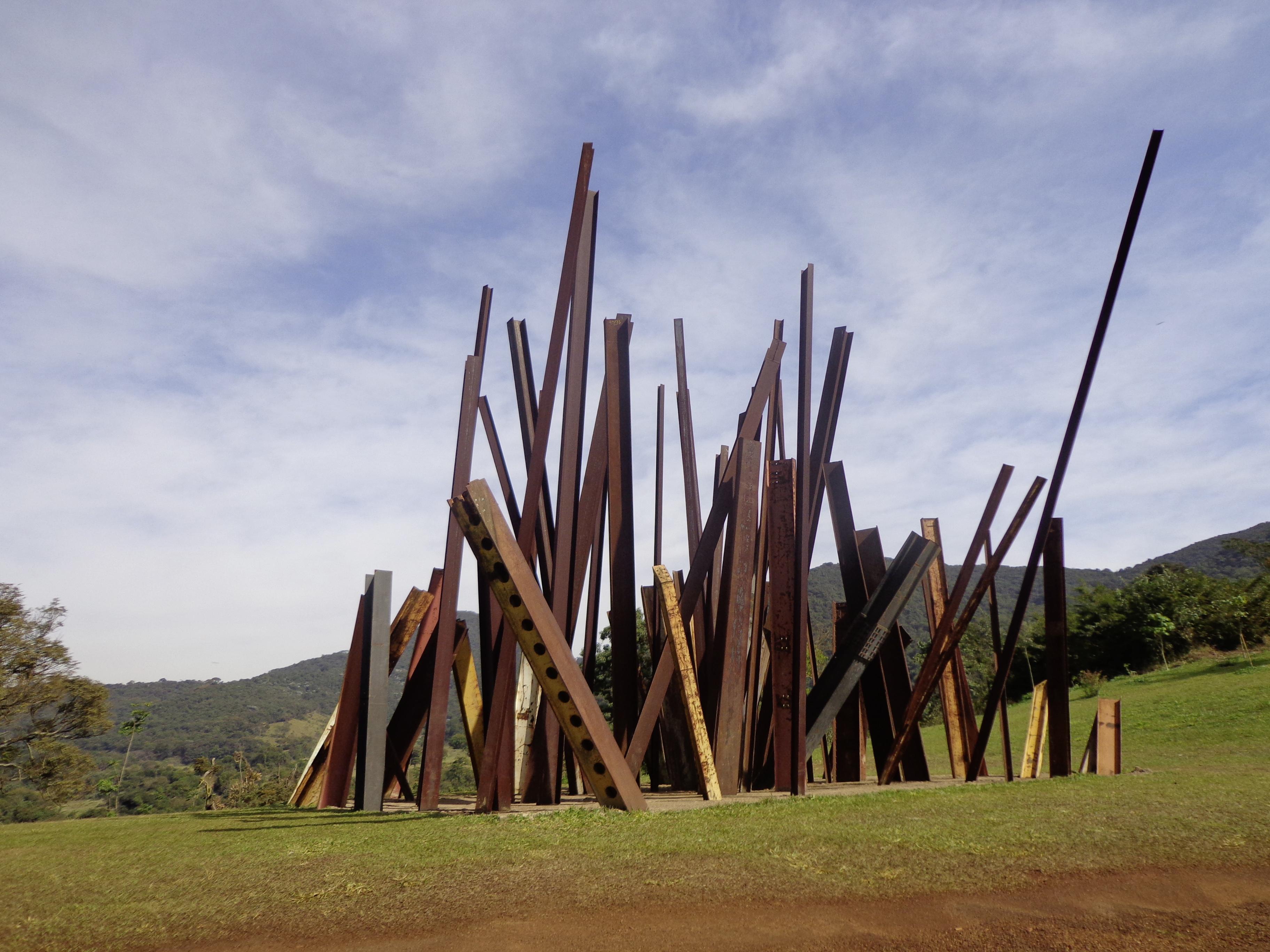 В часе езды от города находится Иньотим — нечто среднее между ботаническим садом и музеем современного искусства. Бразильцы им очень гордятся. Посреди бурного изобилия деревьев и цветов — выставочные павильоны и инсталляции, некоторые поистине монументальны. Одна из них состоит из семидесяти хаотично расположенных огромных металлических балок и называется… «Падение балок».