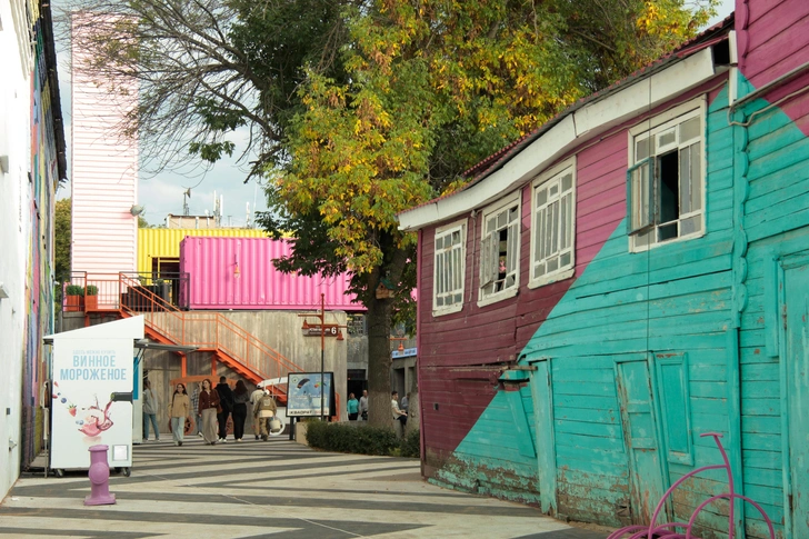 Позади уже половина маршрута. Главная достопримечательность Уфы — памятник Салавату Юлаеву и прилегающая к нему площадь, находятся на масштабной реставрации до 2027 года, поэтому отправляемся гулять в «Арт-квадрат» — креативное пространство в центре города, где историческая застройка соседствует с объектами позднесоветского постмодернизма и современными морскими контейнерами, преобразованными в арт-кластер.