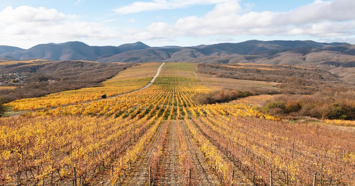 Подняться на вершины Абрау-Дюрсо стоит ради потрясающих видов. Осенью, например, пейзаж окрашивается в красновато-золотистые оттенки: долины, испещренные рядами виноградных лоз, напоминают кадры из итальянской Тосканы.