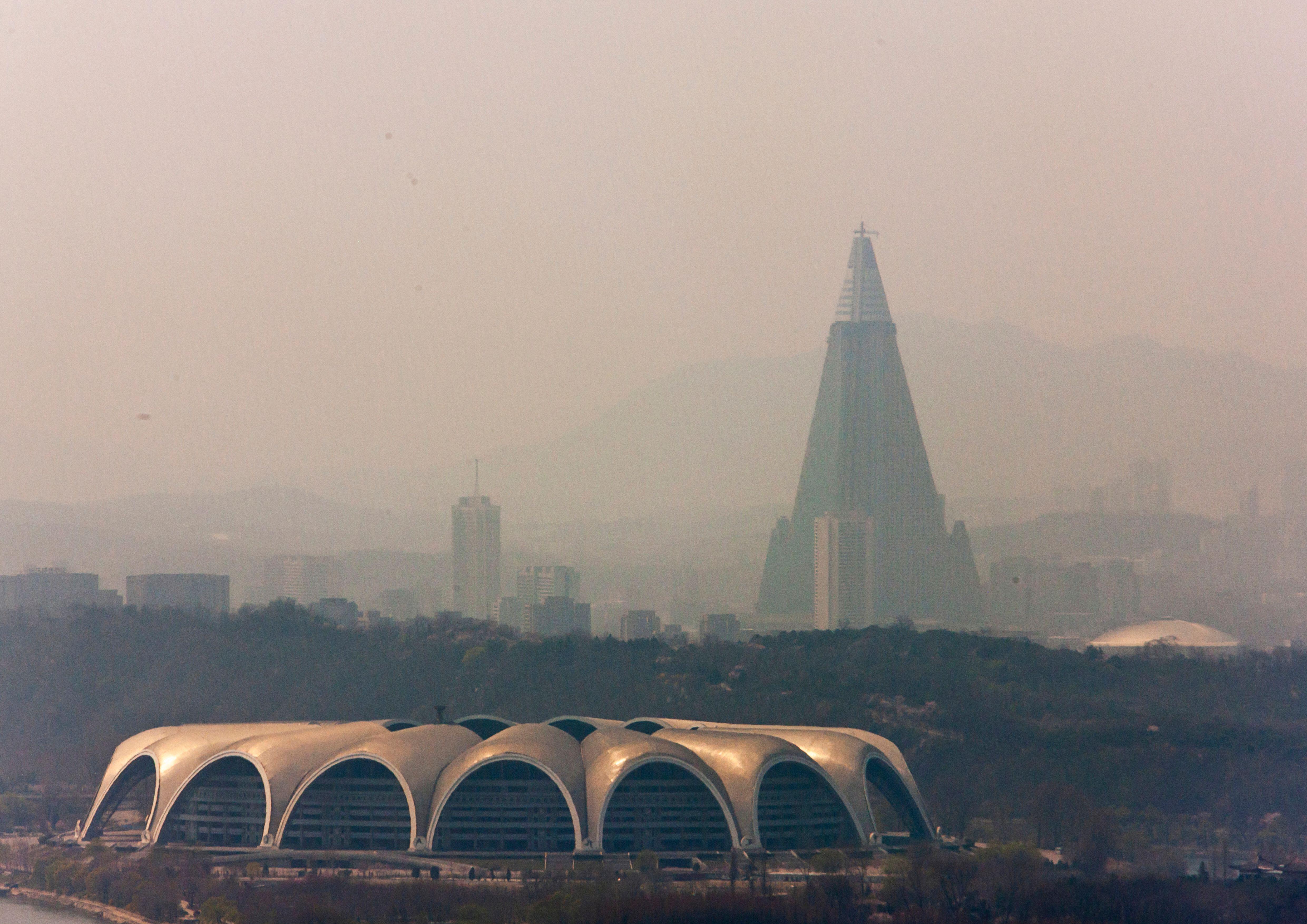 Город утопает в монументальных высоченных зданиях, подчёркивающих ничтожность человека перед возможностью инженерного прогресса. Среди них есть и мировые рекордсмены. Так, футбольный стадион 1 мая — крупнейший по вместимости в мире, а также недостроенная гостиница Рюгён — одно из самых больших зданий на планете (330 м в высоту, 105 этажей).