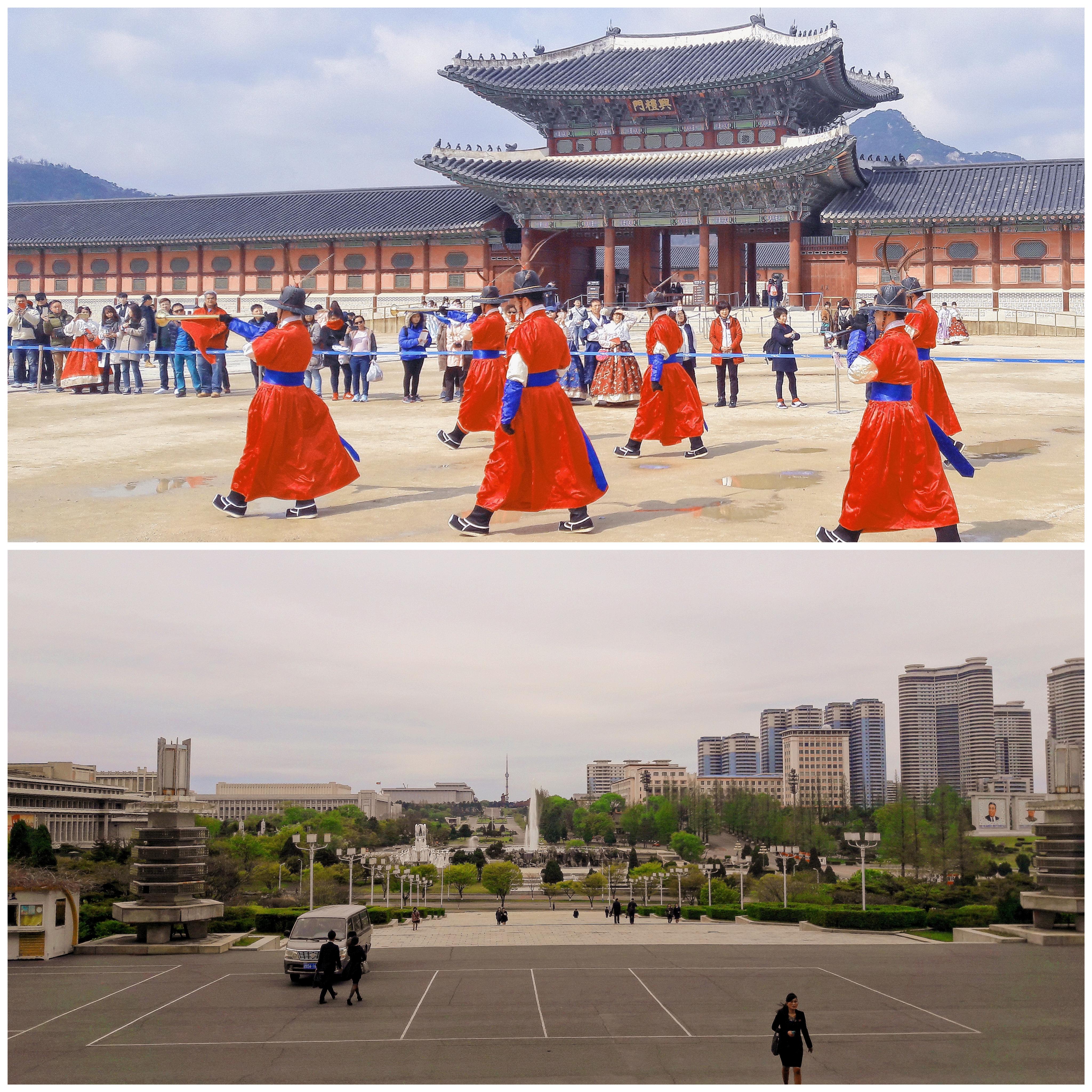 Пхеньян и Сеул — столицы двух Корей выглядят как две разные планеты. Сеул — современный, многолюдный и космополитичный город. С модно одетыми людьми в разнообразных пёстрых нарядах, стеклянными высотками, творческими кварталами, ночными клубами и музеями современного искусства.