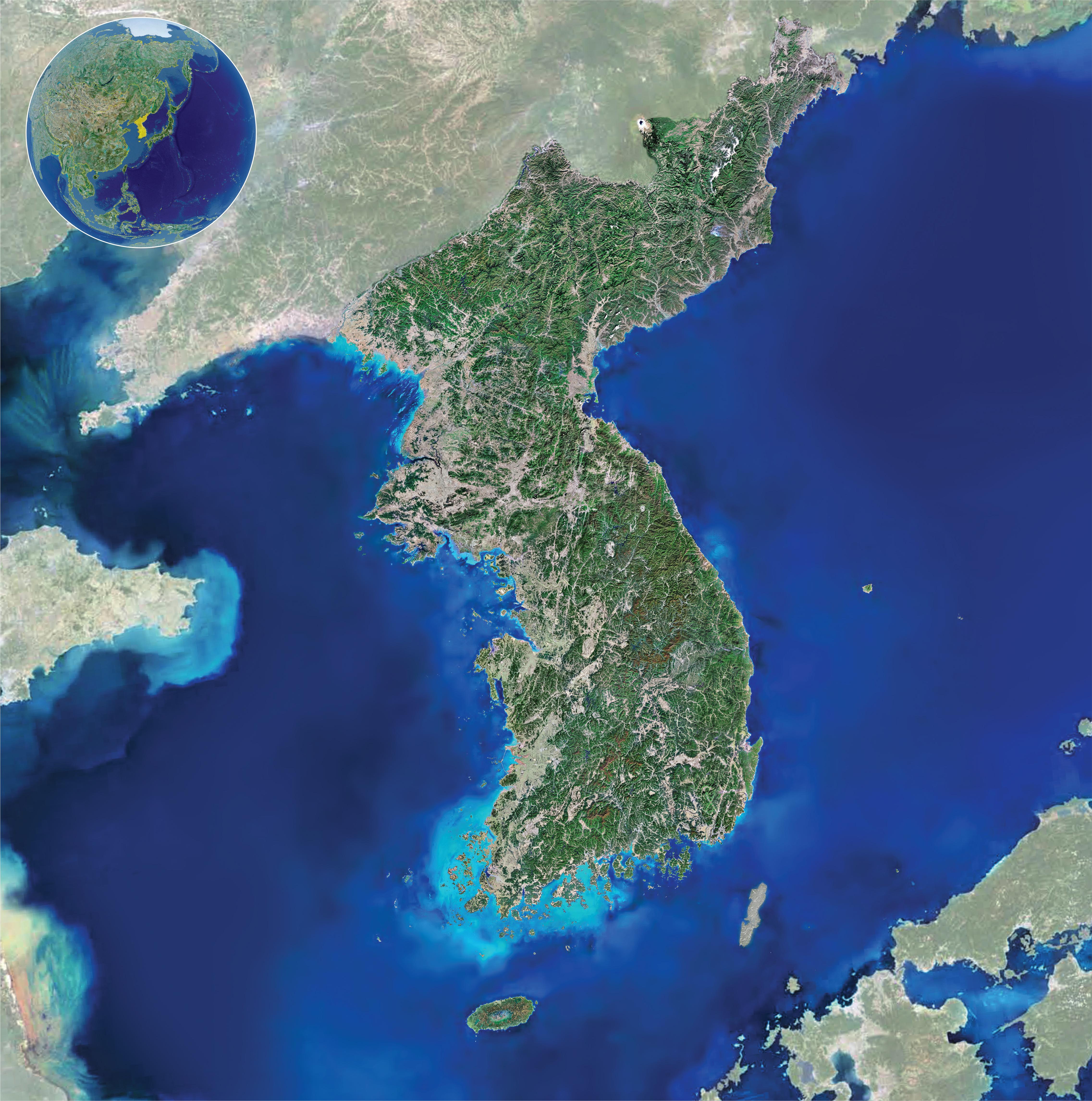 В обеих Кореях границы государства очерчены на территорию всего полуострова, разница лишь в цвете флага.