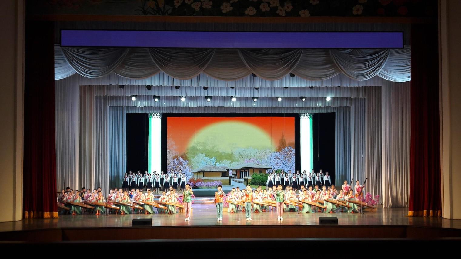 А во Дворце Пионерии в Пхеньяне, где для нас организовали концерт, выступающие пионерки тоже были в национальных платьях, но в менее пёстрых и более сдержанных по цвету.