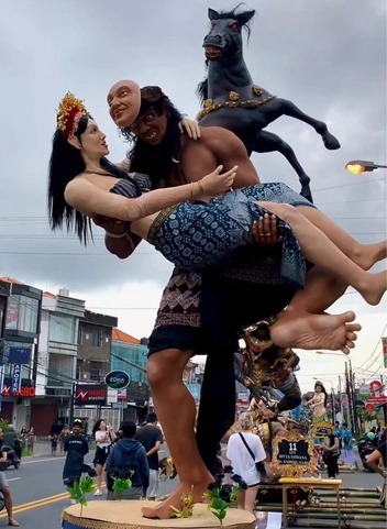 Чем это обернется для тех, кто окажется на острове в эти дни? Невероятно красивым торжеством. Накануне жители выходят на улицы с огромными чучелами Ого-Ого, которые месяцами создают из бамбука, ткани и папье-маше. Эти чудовища с искаженными лицами, когтями и рогами символизируют злых духов, которым предстоит сгореть в пламени после заката.