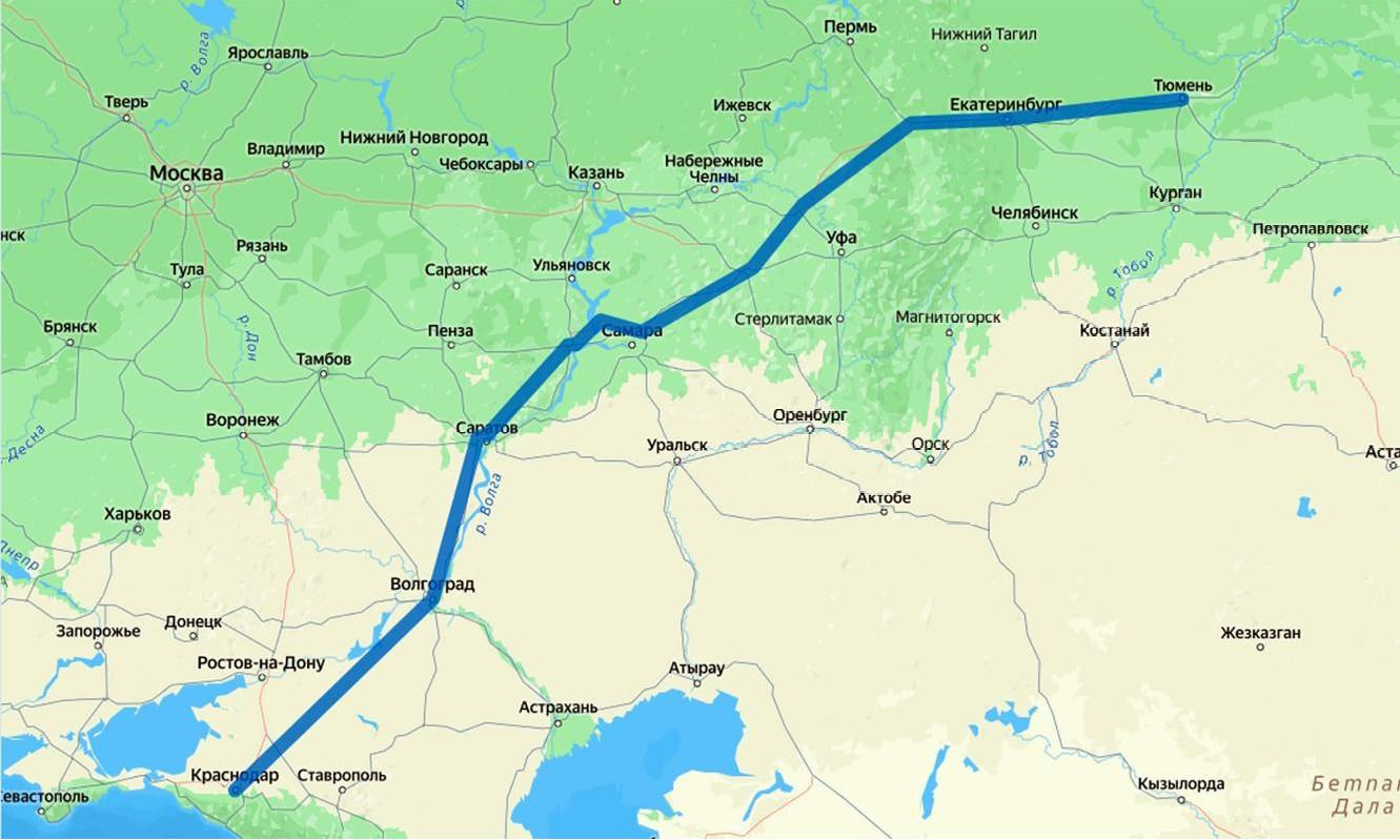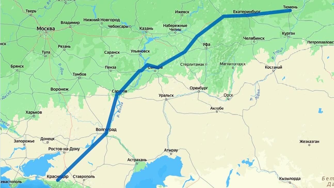 15 часов займет путь из Краснодара в Екатеринбург в обход всех крупных городов;