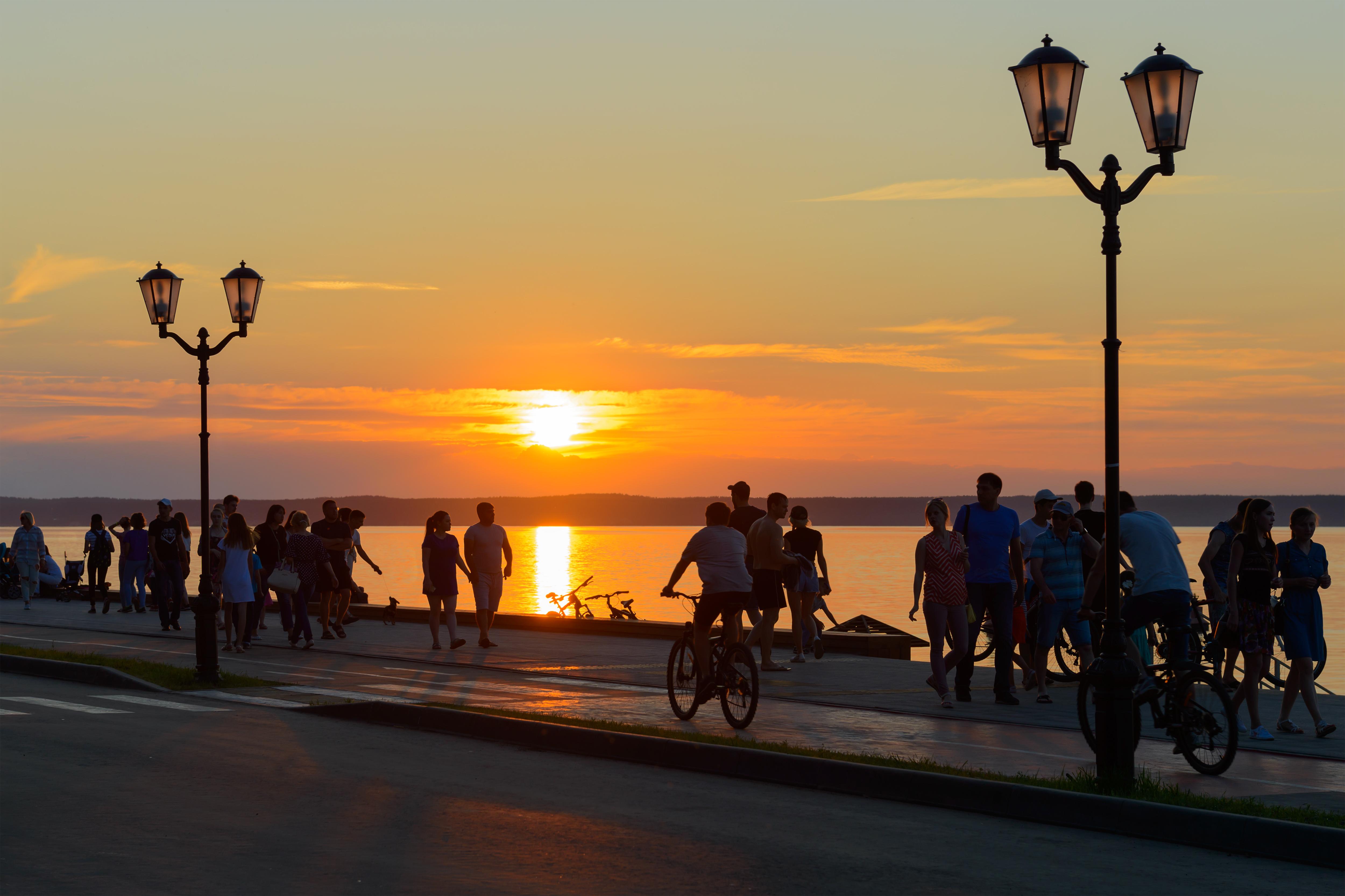 Набережная строилась в первую очередь для жителей, хотя туристы тоже тут бывают. Это пространство для детей, спортсменов, велосипедистов, любителей пеших прогулок. С одной стороны — вода, с другой — высокий лесистый берег. Между ними — детские площадки, прокаты, кафе, зоны для загара, спортивные площадки.