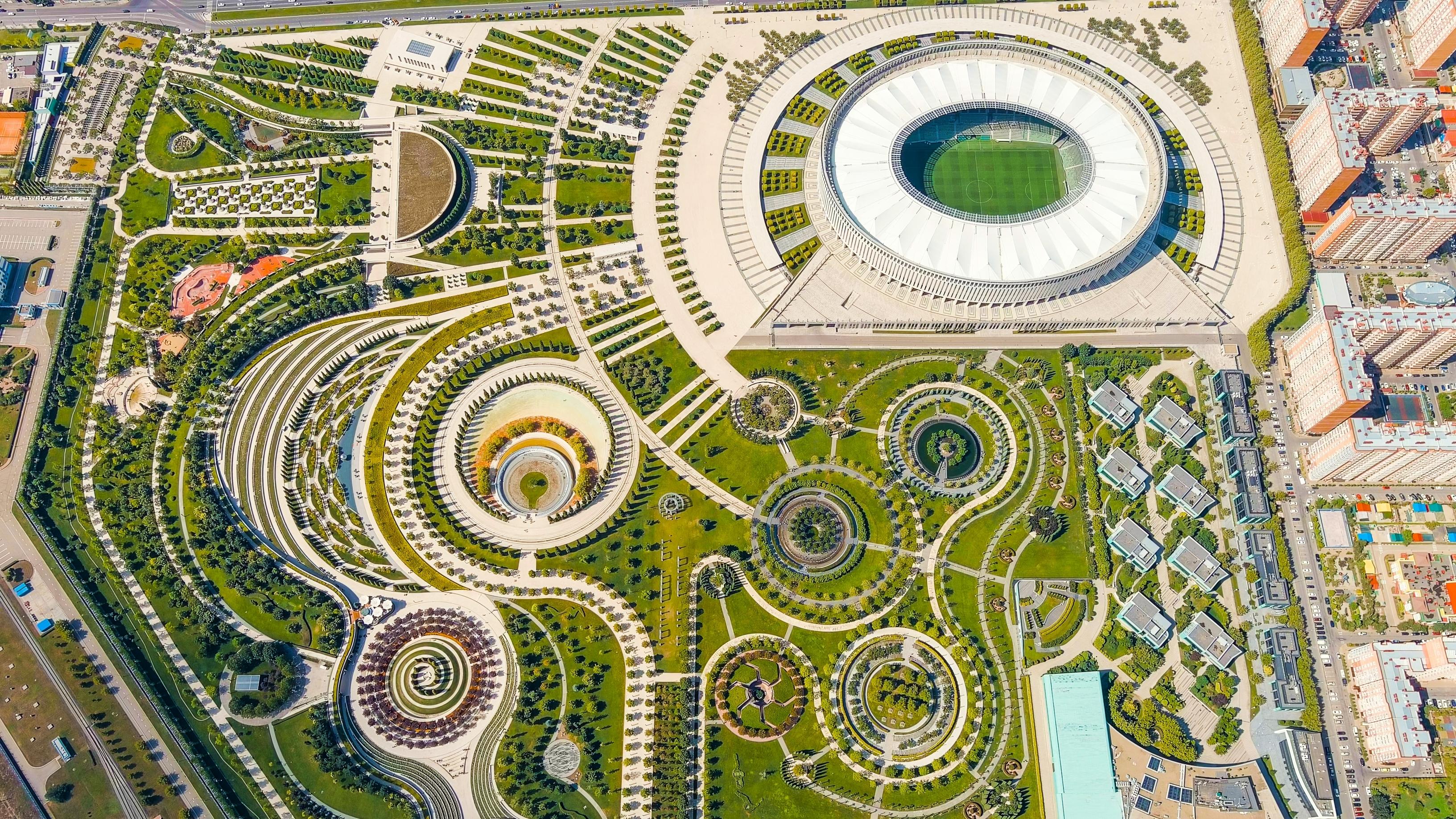 Как отмечает Наталья Машталир, заместитель руководителя ГКУ КК «Институт развития градостроительства и городской среды Краснодарского края», изначально парк задумывался как место успокоения пешеходного трафика после футбольных матчей: «Архитекторы мудро заложили туда движение по спирали, а это самое благостное для нервной системы млекопитающих».