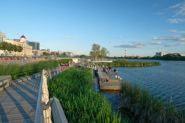 «Задача была не сделать классическое благоустройство, а выстроить всю логику вокруг фитоочистной системы: вода забирается, проходит через три каскада очистки, — рассказывает Гиззятова. — Кувшинки в последнем каскаде служат индикатором чистоты воды, потому что в грязной они просто не растут. Большой блок работы был связан с подбором местных растений — каждое растение забирает из грязной воды свой вид загрязнений и взвесей. Например, в первом водоеме эйхорнии забирают ПАВы и крупные фракции. То есть благоустройство озера выстроилось вокруг экологической системы плюс был учтен локальный контекст».