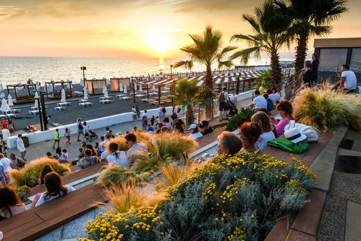 Сильная сторона — четкое функциональное зонирование. Детские зоны не мешают спокойному отдыху, спортивные площадки отделены от прогулочных маршрутов. Хорошо продуманы маршруты для маломобильных посетителей — раньше доступа для таких посетителей не было. Кафе и ресторанов немного, но они вписаны аккуратно и выдержаны в едином стиле. И, конечно, это очень фотогеничная точка — вид на море и закатный амфитеатр быстро стали визуальной визиткой пространства.