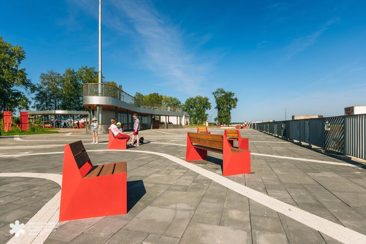 Также на набережной есть спортивная площадка для командных игр, беседки с видом на водохранилище, лежаки для солнечных ванн и торговые точки с волжской рыбой. Главное достоинство — идентичность. Здесь даже уличный душ выдержан в рамках стильного дизайн-кода, который уважительно обращается к истории и характеру Чкаловска.