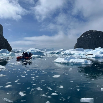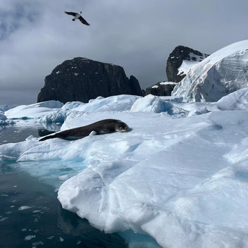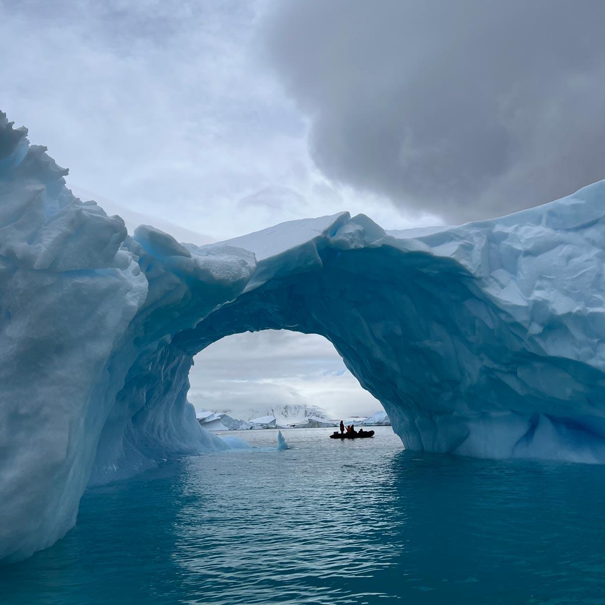На следующий день мы отправились исследовать другие локации Антарктического полуострова. По возможности сходили на берег и исследовали территорию пешком. Когда прогуляться не получалось из-за неподходящих условий, мы отправлялись в так называемые зодиак-туры: подплывали к айсбергам на надувных лодках и наблюдали за тюленями и китами.