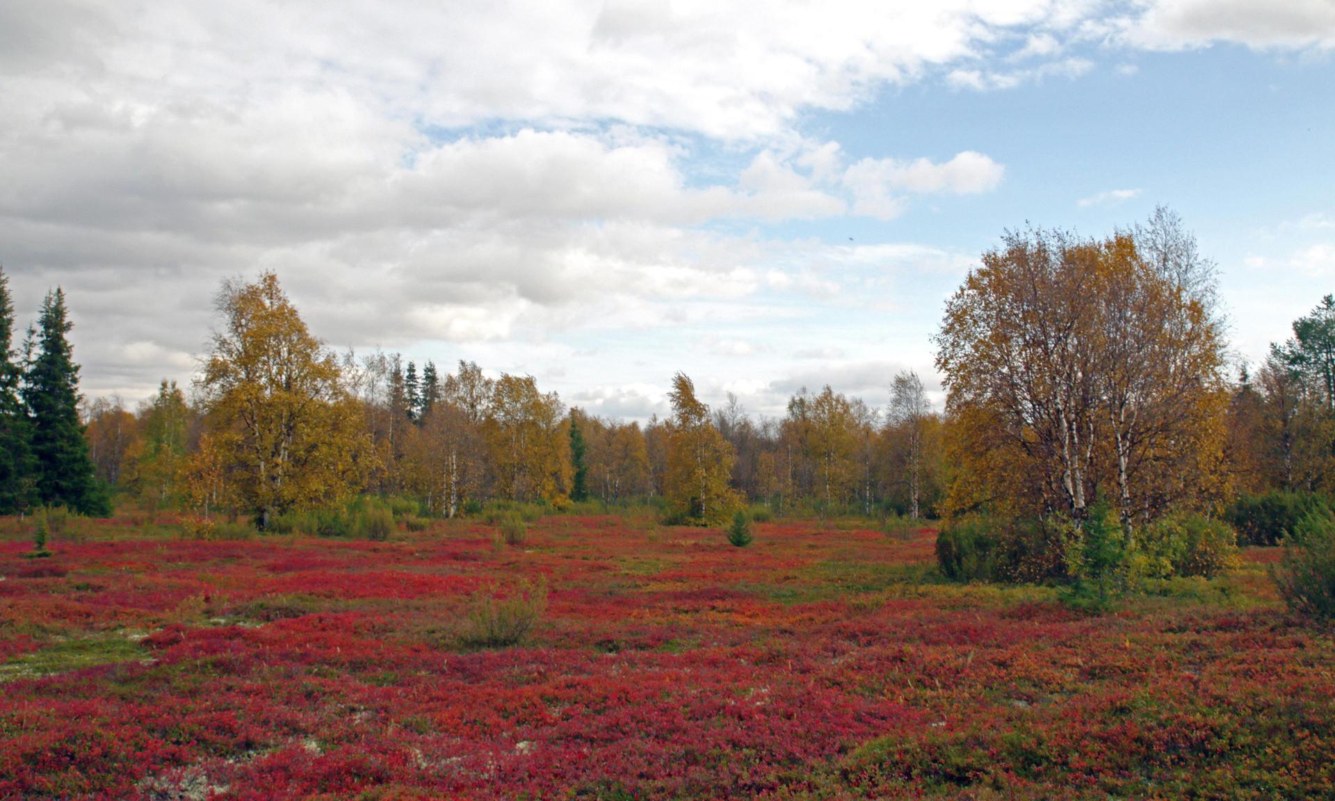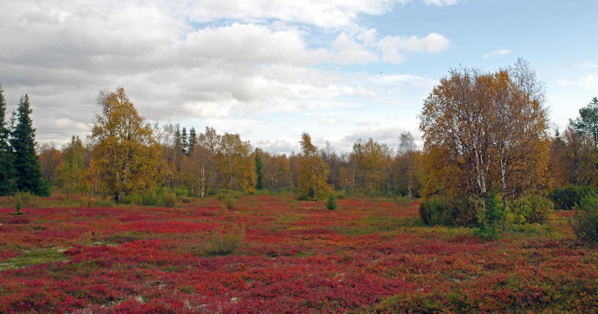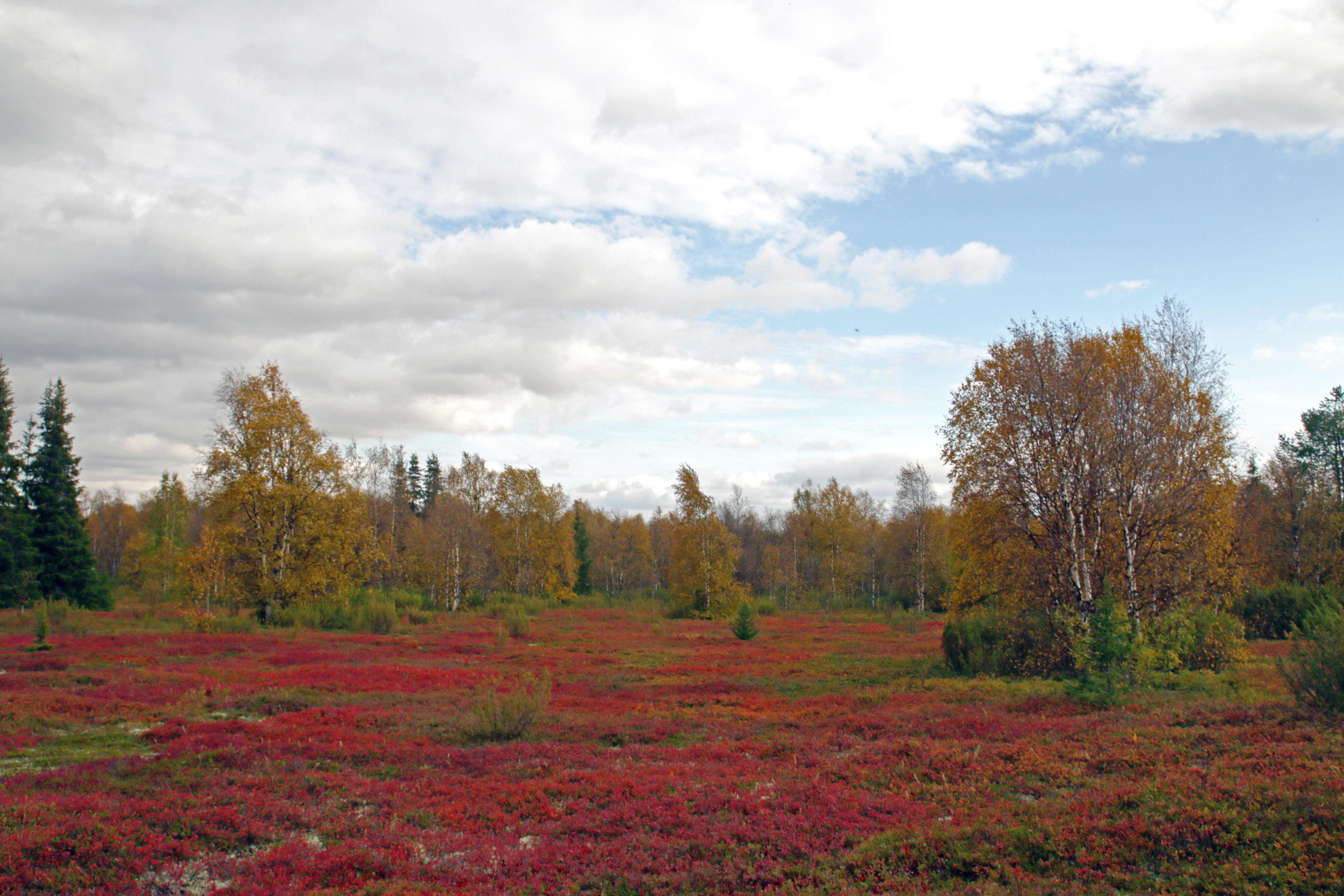 В это время года окрестности экомаршрута представляют собой разноцветный, слегка пружинящий под ногами ковер из лишайников и ягод: водяники, голубики, брусники и несъедобного арктоуса альпийского — именно его ярко-красные листочки придают основной цвет покрову. Дополнением к настоящему морю спелых ягод служат грибы, которые не нужно искать — на них, как и на ягоды, сложно не наступить.