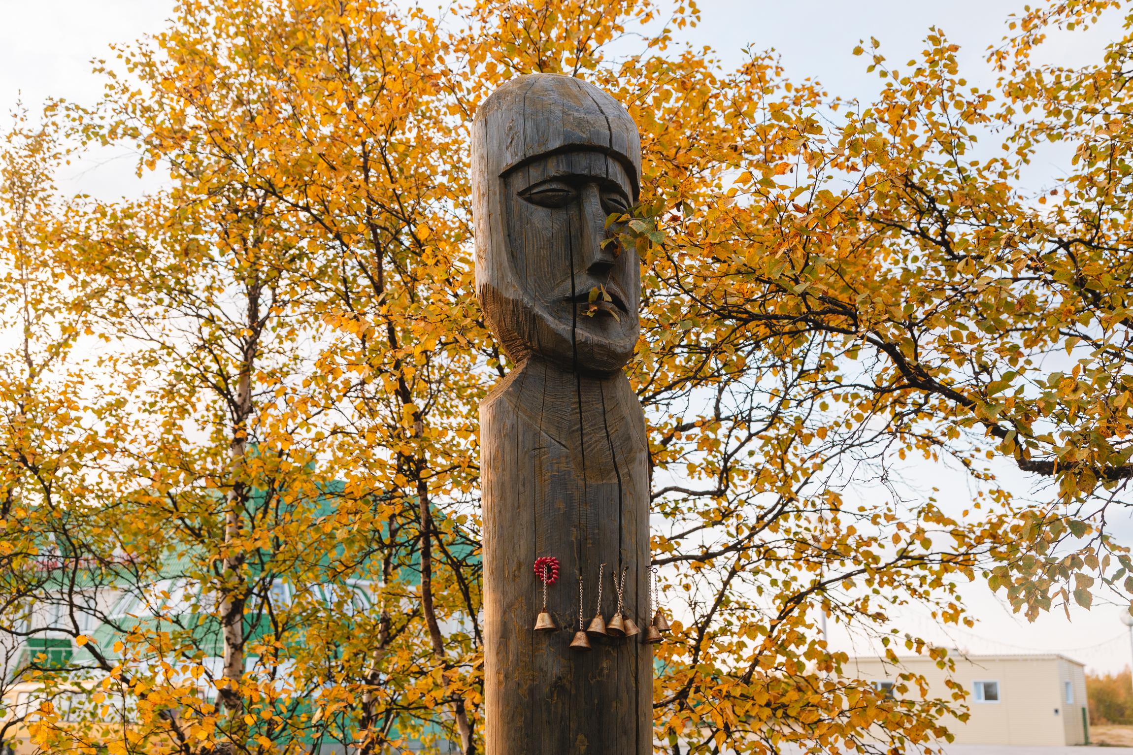 Ровный пейзаж осенней тундры-самобранки разбавляют кусты жимолости и можжевельника, а также островки реликтового леса с невысокими березами и елями. Дополняют картину установленные вдоль тропы деревянные арт-объекты. Даже жаль, что тропа кончается через 10 километров — по такой красоте хочется шагать и шагать, изредка прерываясь на сбор ягод.
