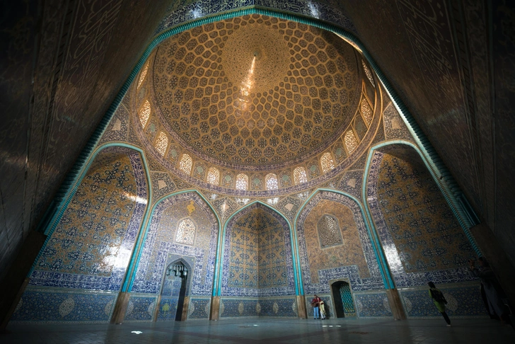 Главной городской мечетью всегда была мечеть Имама. Но она была общественной. Поэтому шах Аббас Великий построил мечеть для личного пользования, назвав ее мечетью шейха Лютфуллы в честь своего зятя, который происходил из знатного рода и был очень почитаемым человеком в Персии того времени. Внутренняя отделка свода купола мечети выполнена таким образом, что при свете солнечных лучей в ней можно разглядеть распушившего хвост павлина.