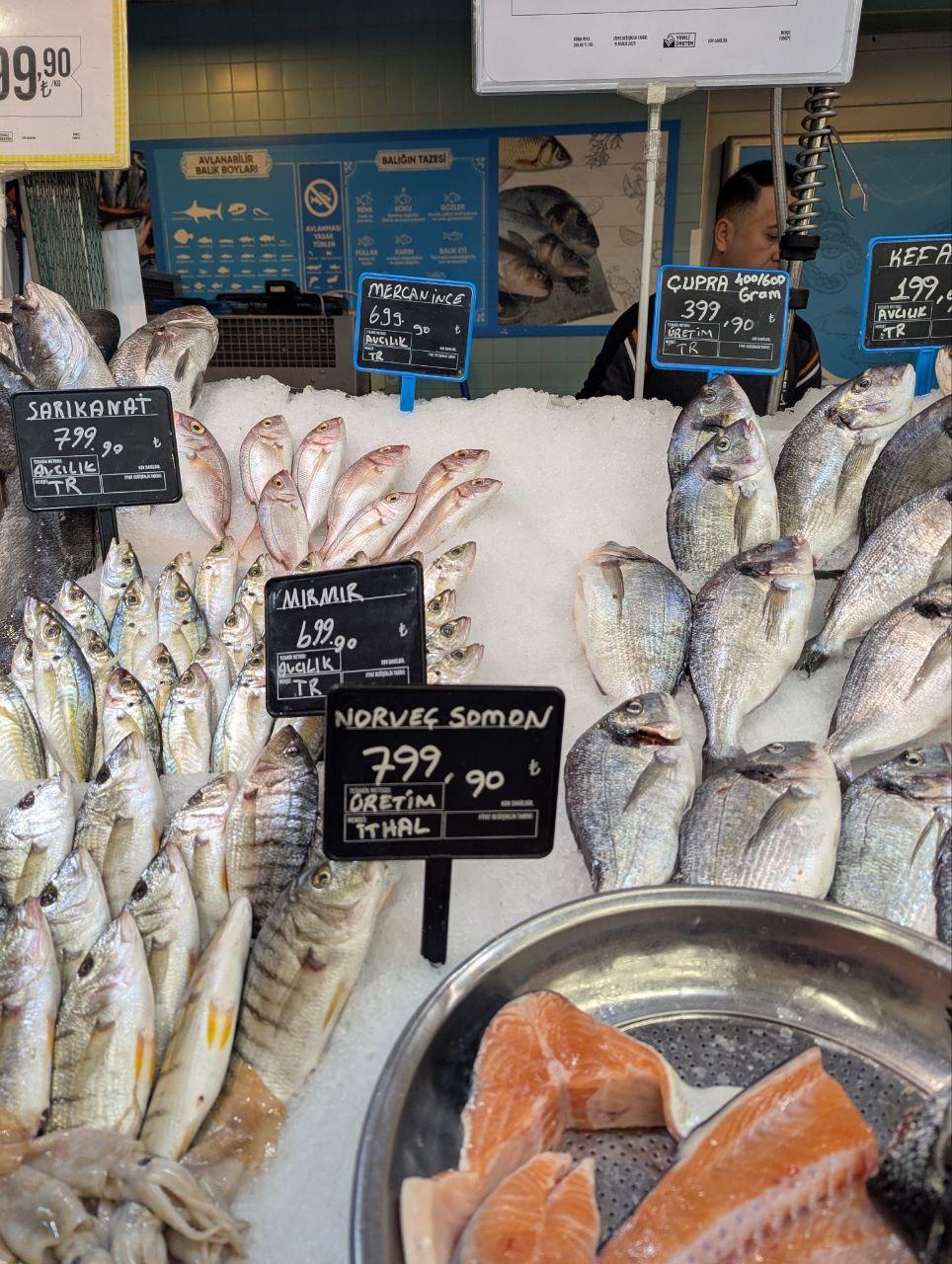 Больше всего, как и в прошлом году, нас порадовала рыба и морепродукты. Разброс цен довольно большой, но куда бы вы ни пошли — на рыбный рынок в Старом городе, к одиночным рыбакам у моря, в небольшие рыбные лавки или тот же Migros — везде все суперсвежее, иногда все еще трепыхается и пускает пузыри.