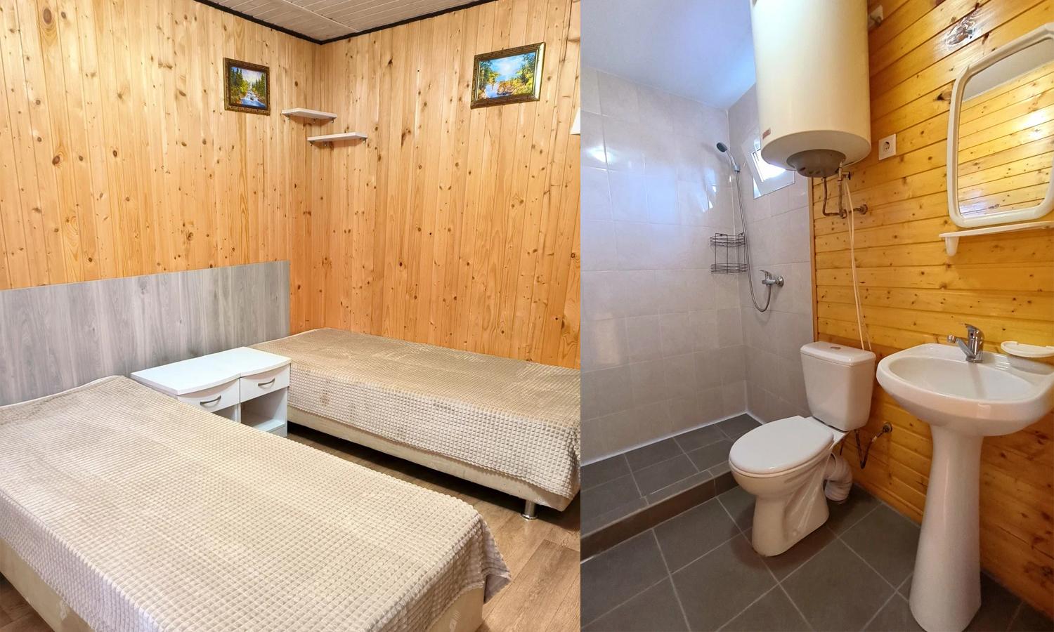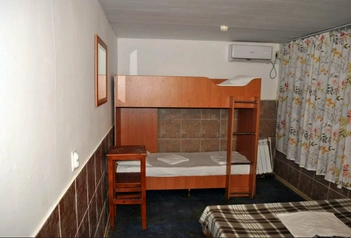 В номере площадью 12м2 могут разместиться до четырех человек: двое на двуспальной кровати и еще двое на двухъярусной. Согласно краткому описанию, у гостей будет доступ к интернету, есть отопление, кондиционер и «удобства» (без пояснений, какие именно).