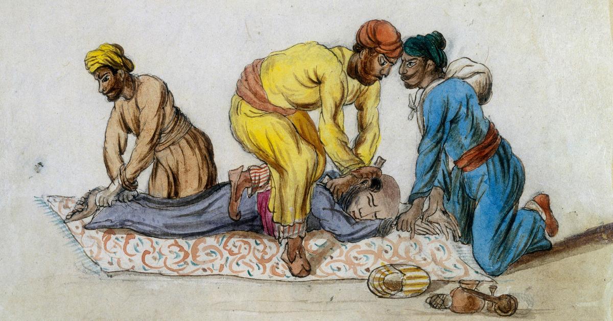 К началу XIX века английская администрация, непосредственно управлявшая примерно 1/3 территории Индии, худо-бедно научилась бороться с традиционными видами преступности. Однако мало-помалу в головы наиболее проницательных чиновников Ост-Индской компании стало закрадываться подозрение, что у преступного айсберга есть еще и подводная, скрытая от них часть.