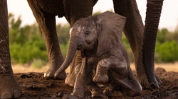 Слоненок принимает грязевые ванны