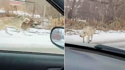 Видео: бежавший по улице волк встревожил жителей пригорода Челябинска