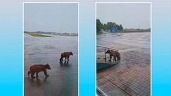 Это Россия: на Камчатке три медведя пришли на вертодром — видео